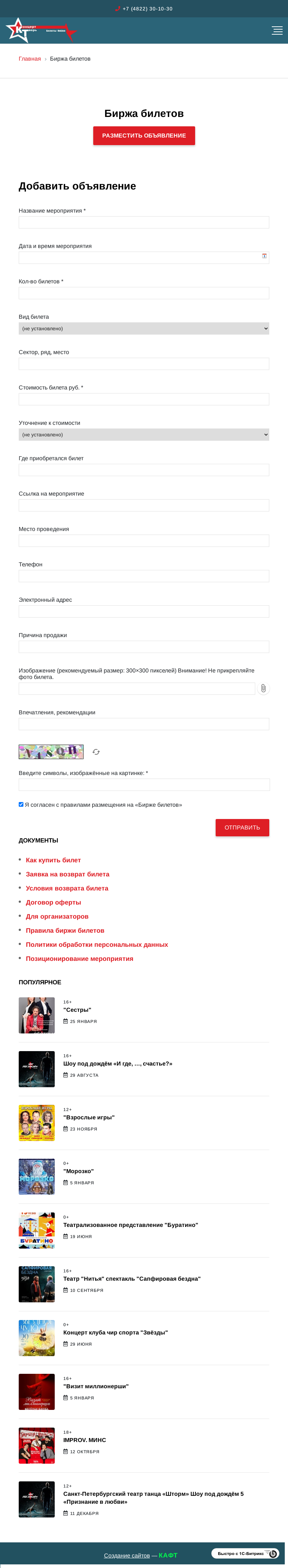 Реализована удобная афиша с онлайн-продажей билетов, подробными описаниями мероприятий, биржа билетов с возможностью возврата билетов. Сайт адаптирован под все устройства, быстро работает, защищён и легко управляется благодаря возможностям 1С-Битрикс.