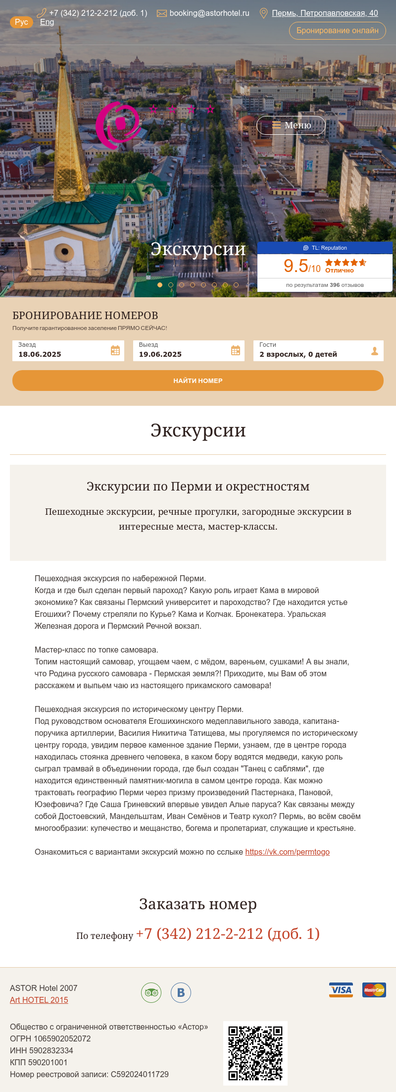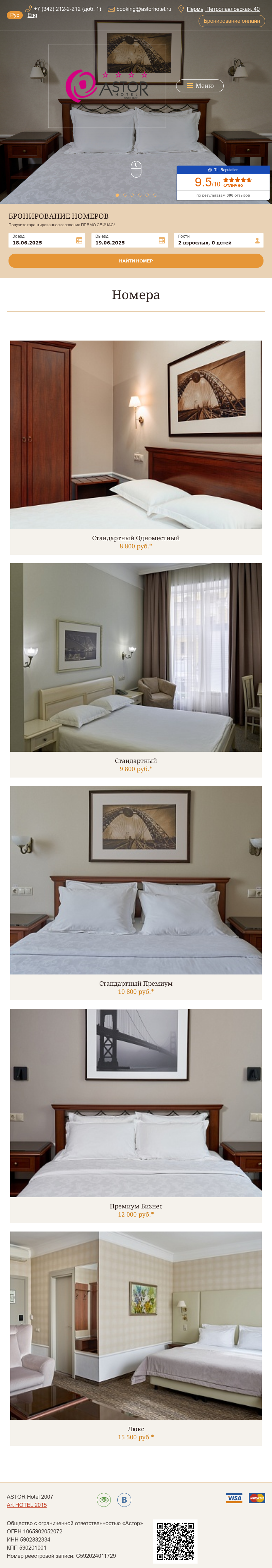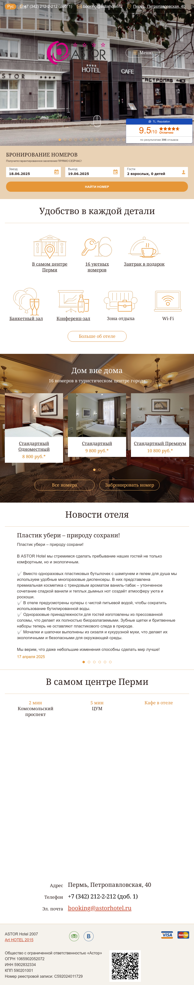 Официальный сайт отеля "ASTOR Hotel 4*" в Перми
